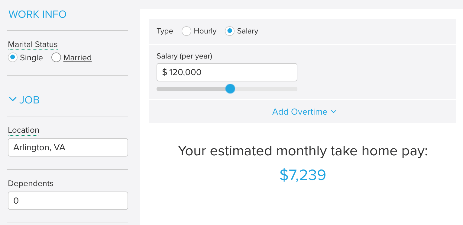 After federal and state taxes (before any retirement contributions), a person living in the DC metro would bring in $13,619 a month.
